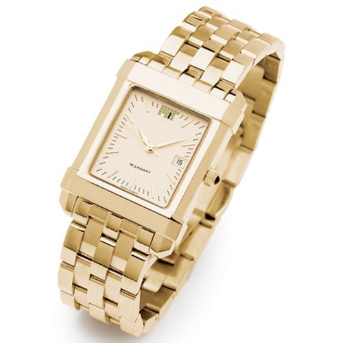 Massachusetts Institute of Technology mens gold watch featuring MIT logo at 12 oclock on cream dial Swiss-made quartz movement with 7 jewels Cream dial with hand-applied faceted markers and date window Jewelry-grade gold finish with Swarovski black crystal cabochon Scratch-resistant sapphire c Read More..