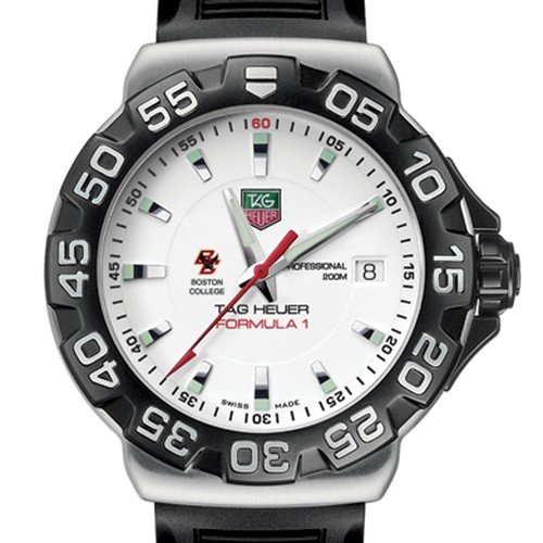 Boston College TAG Heuer mens Formula 1 watch brings sport and style to BC by featuring the BC athletic logo with Boston College below Durable and tough sleek rubber strap Case stamped from a block of solid steel 384 mm diameter Massive titanium-coated steel rotating bezel Luminescent hand Read More..